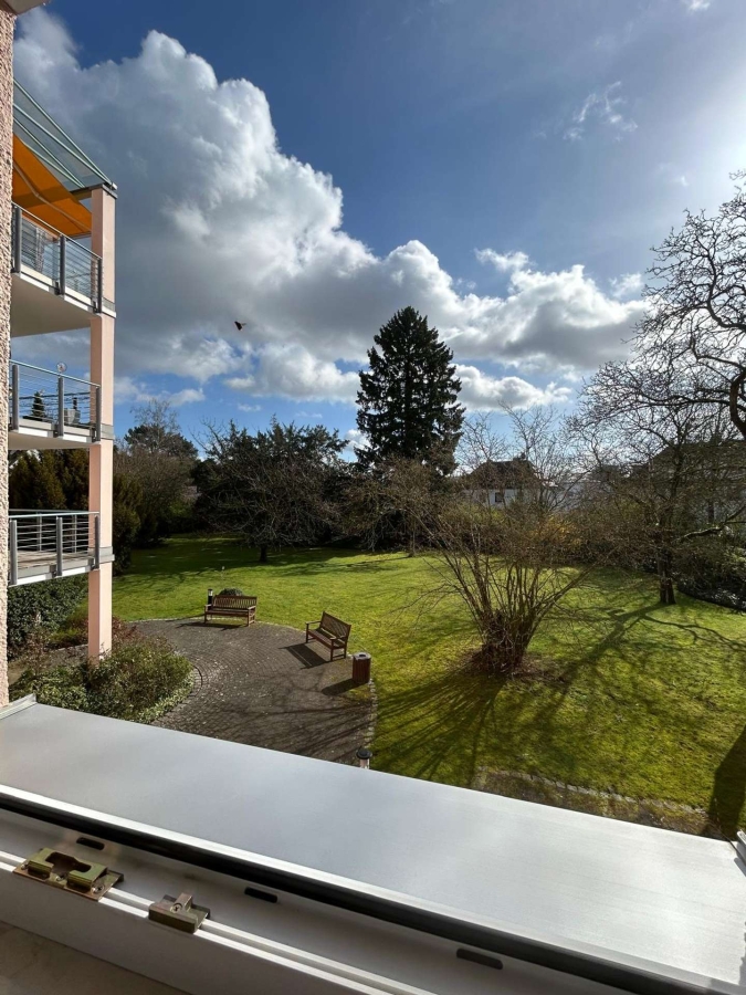 Die Wohnung ist barrierefrei zu erreichen, vollständig altersgerecht ausgestattet und bietet dank der Lage im 1. Obergeschoss einen wunderschönen, beruhigenden Blick ins Grüne. Die Hofstraße 5–9 gilt als besonders angenehme, ruhige Adresse – ideal, um den Ruhestand in entspannter Atmosphäre zu genießen.